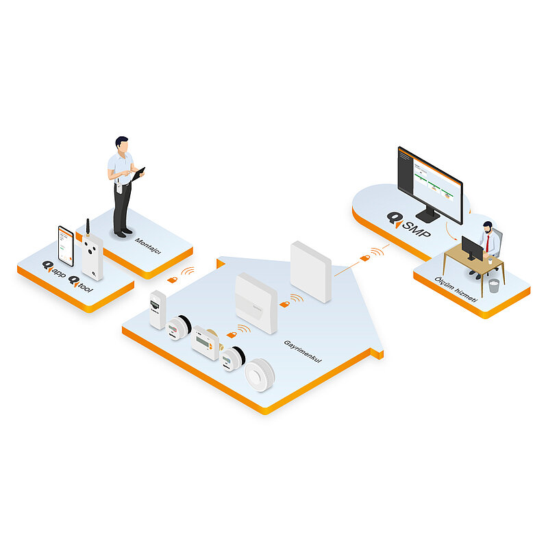 Q SMP, uzaktan okuma sisteminden alınan verileri ölçüm hizmet sağlayıcısına iletir. Veriler, ısıtma maliyet dağıtıcıları, ısı sayaçları ve su sayaçlarının güncel ölçüm değerlerinden oluşur. Veriler, ayda bir veya iki kez mobil iletişim yoluyla otomatik olarak sağlanır.